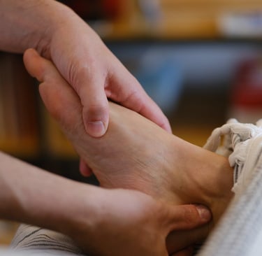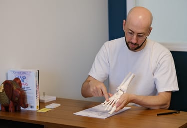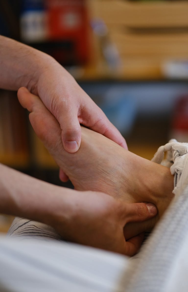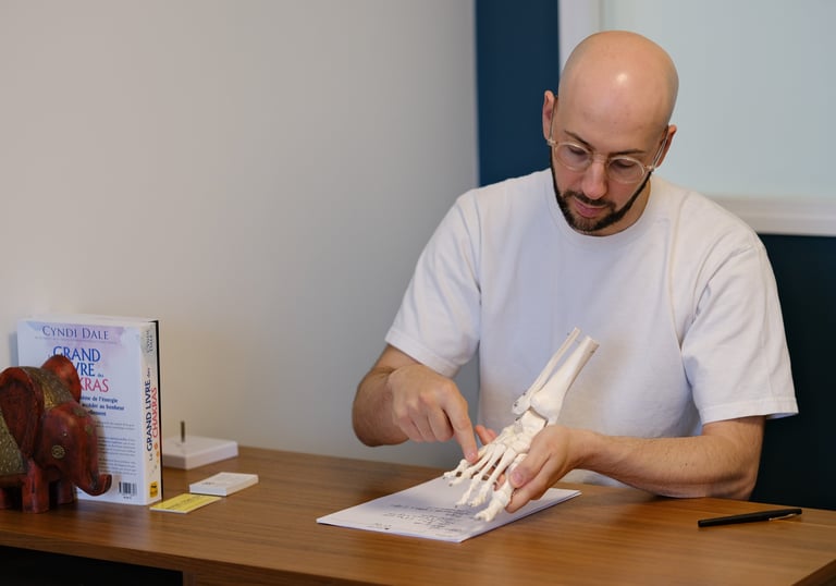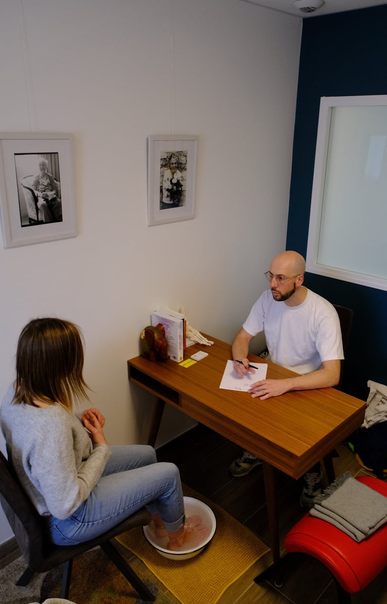 ✅ Nous identifions ensemble les zones douloureuses et tendues de tes pieds.